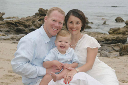 (Name of child held in arms follows adult)